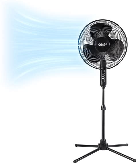 Comfort Zone 16-Inch Oscillating Pedestal Fan, 3-Speed High-Velocity Cooling, Adjustable Height & Tilt, Quad-Pod Folding Base, Black - ETL Listed