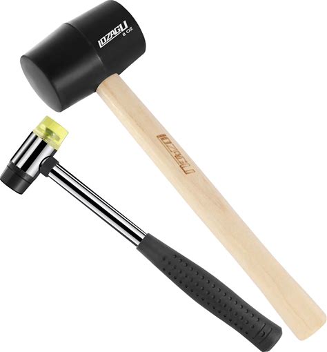 LOZAGU 2-Pack Rubber Mallet Hammer Set, 8Oz & 25mm Small Rubber Mallet Hammer Tool, Rubber Mallet For Flooring, Tent Stakes, Woodworking, Camping,