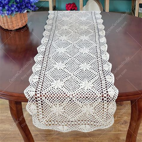 Vintage Beige Crochet Lace Table Runner For Coffee Table Decor Beige A 24x350cm