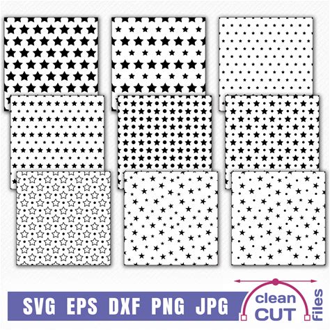 Polka Stars Pattern SVG Bundle, Seamless Vector Template Cutting And Clipart Files, Retro Big And Small Texture Images