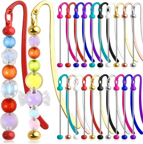 Boocalny 20 Pieces Beadable Bookmarks, Metal DIY Bookmarks Blank Pendant Bar, Book Charms Bookmark With Bead Chains, Beaded Book Mark Craft Lanyards